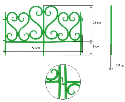 - Ажурное ограждение станет лучшим обрамлением цветника, клумбы, грядок, детской площадки и садовой дорожки.