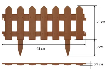 - Заборчик идеально дополнит цветочную клумбу, грядки или садовую дорожку. Где бы его не расположили, он смотрится уместно и притягательно.