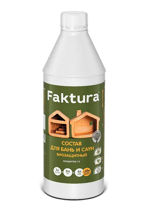 Состав FAKTURA для бань и саун биозащитный концентрат 1:5, бутылка 1 л
