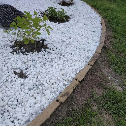 Бордюр «Камешки» хорошо сочетается со следующими декоративными материалами: мульчей, декоративной корой, камнями.