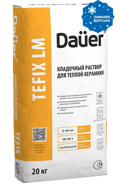 Теплоизоляционный кладочный раствор QUADER® TEFIX LM Зима, 20 кг, мешок