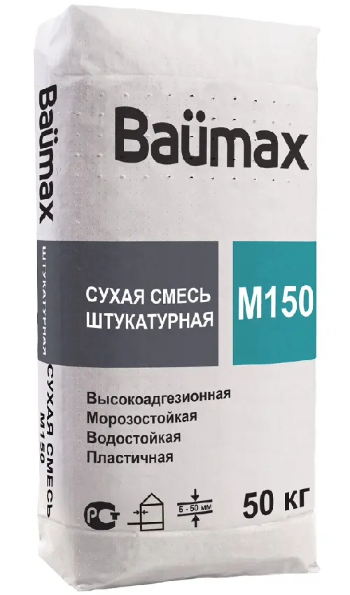 Сухая смесь штукатурная Baumax М-150, 50 кг, мешок