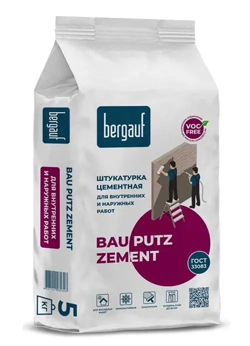 BAU PUTZ ZEMENT, 5 кг, Штукатурка цементная для внутренних и наружных работ, Bergauf