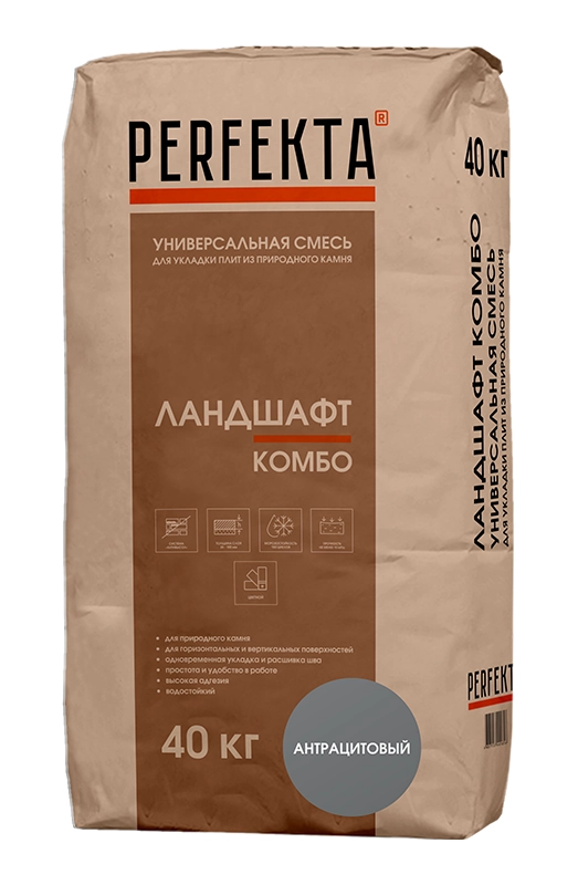 PERFEKTA Универсальная смесь для укладки плит из природного камня Ландшафт Комбо антрацит, мешок 40 кг