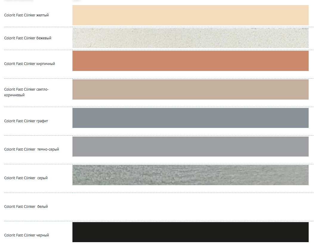 Серый, темно-серый, графит, черный, коричневый, шоколадный, кирпичный | 0,10-0,12 л воды/2,5 - 3,0 л воды | 0,17-0,20 л воды/4,25 -5,0 л воды |