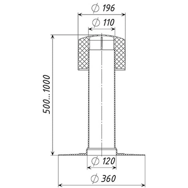 Аэратор кровельный монтируется на плоских кровлях для вывода водяных паров с целью предотвращения разрыва кровельного покрытия. Диаметр трубы составляет 110 мм.