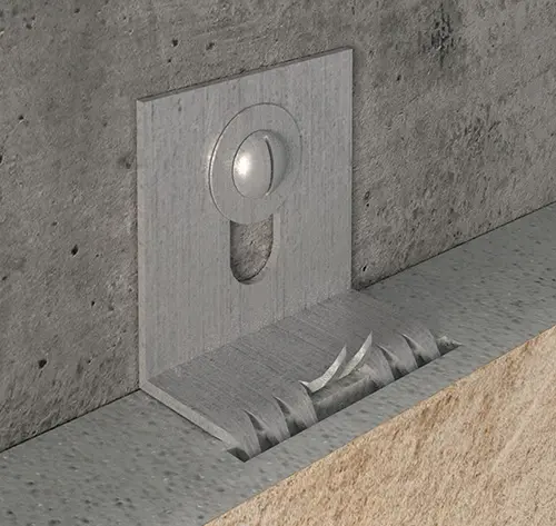 - Монтаж плинтусов. Фигурная пластина-кляммер прикручивается на стену, а затем на неё прищёлкивают деревянный плинтус (в том числе пластиковый или из МДФ), на тыльной стороне которого отфрезерованы специальные крепёжные пазы. В данном случае кляммеры зачастую бывают пластиковыми.