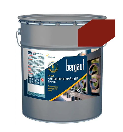 ГФ-021, 6 кг, Антикоррозийный грунт для наружных и внутренних работ, красно-коричневый, Bergauf