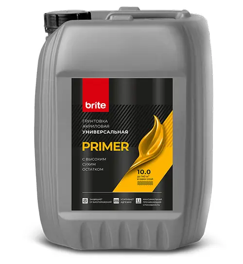 Грунтовка BRITE универсальная с высоким сухим остатком, канистра 10 л
